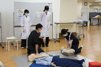 基本となるBLSの知識・技術の習得のほか、院内で遭遇するようなシナリオにも取り組んでいただきました。